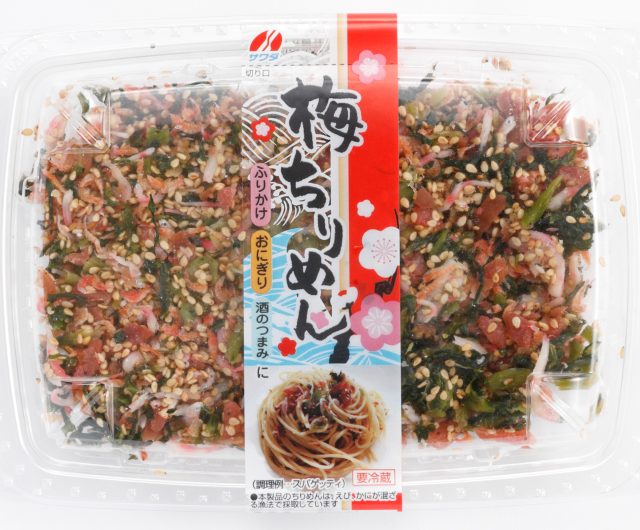 | 原材料名 | 調味野沢菜(野沢菜、砂糖、食塩)、ごま、調味梅(梅肉、砂糖、その他)、ちりめん、ツノナシオキアミ/調味料(アミノ酸等)、酸味料、グリシン、酢酸Na、酵素(卵由来)、着色料(赤102) |