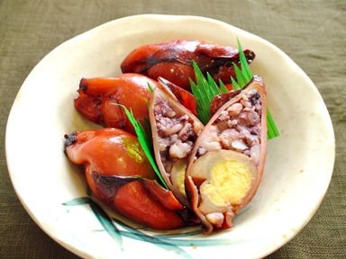 ヤリイカにウズラの卵を入れ甘辛く炊き上げた逸品です。