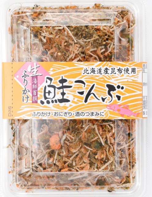 北海道近海の鮭と北海道産の昆布、鱈、オキアミを合わせた海鮮風味の楽しめるふりかけです。