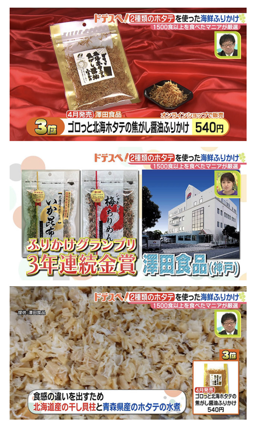 名古屋テレビの「ドデスカ!」のご飯のお共ランキングで、弊社の「ゴロっと北海ホタテの焦がし醬油ふりかけ」が紹介されました。→記事を詳しく見る