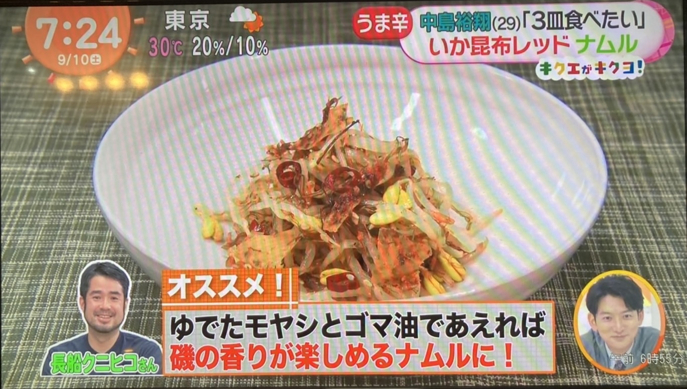 フジテレビ「めざましどようび」の西山喜久恵さんのコーナー「キクエがキクヨ!」にて、弊社の「いか昆布RED」が紹介されました!!