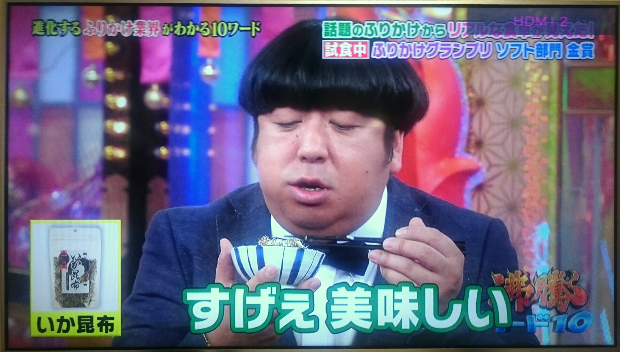 ふりかけのテーマでいか昆布が紹介され、スタジオではバナナマン日村さんがご試食されました。→記事を詳しく見る